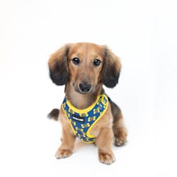 We are obsessed with this collection! The cutest design for you dachshund! Such a cute print and the colors are so fun! Every dachshund needs this harness!